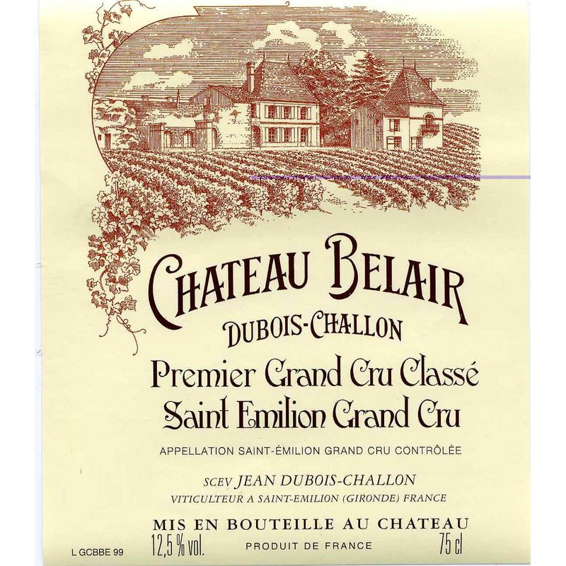 1999 Chateau Belair Premier Grand Cru Classe B, Saint-Emilion Grand Cru 6x75cl