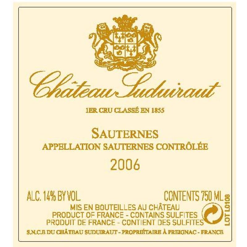 2006 Chateau Suduiraut Premier Cru Classe, Sauternes 12x75cl