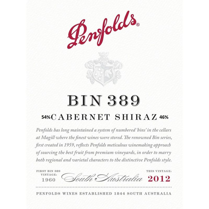 2012 Penfolds, Bin 389 Cabernet Shiraz, South Australia 6x75cl