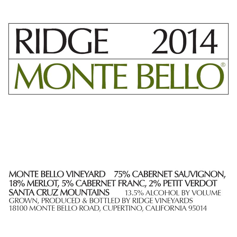 2014 Ridge, California Cabernet Sauvignon Monte Bello, Santa Cruz Mountains 6x75cl